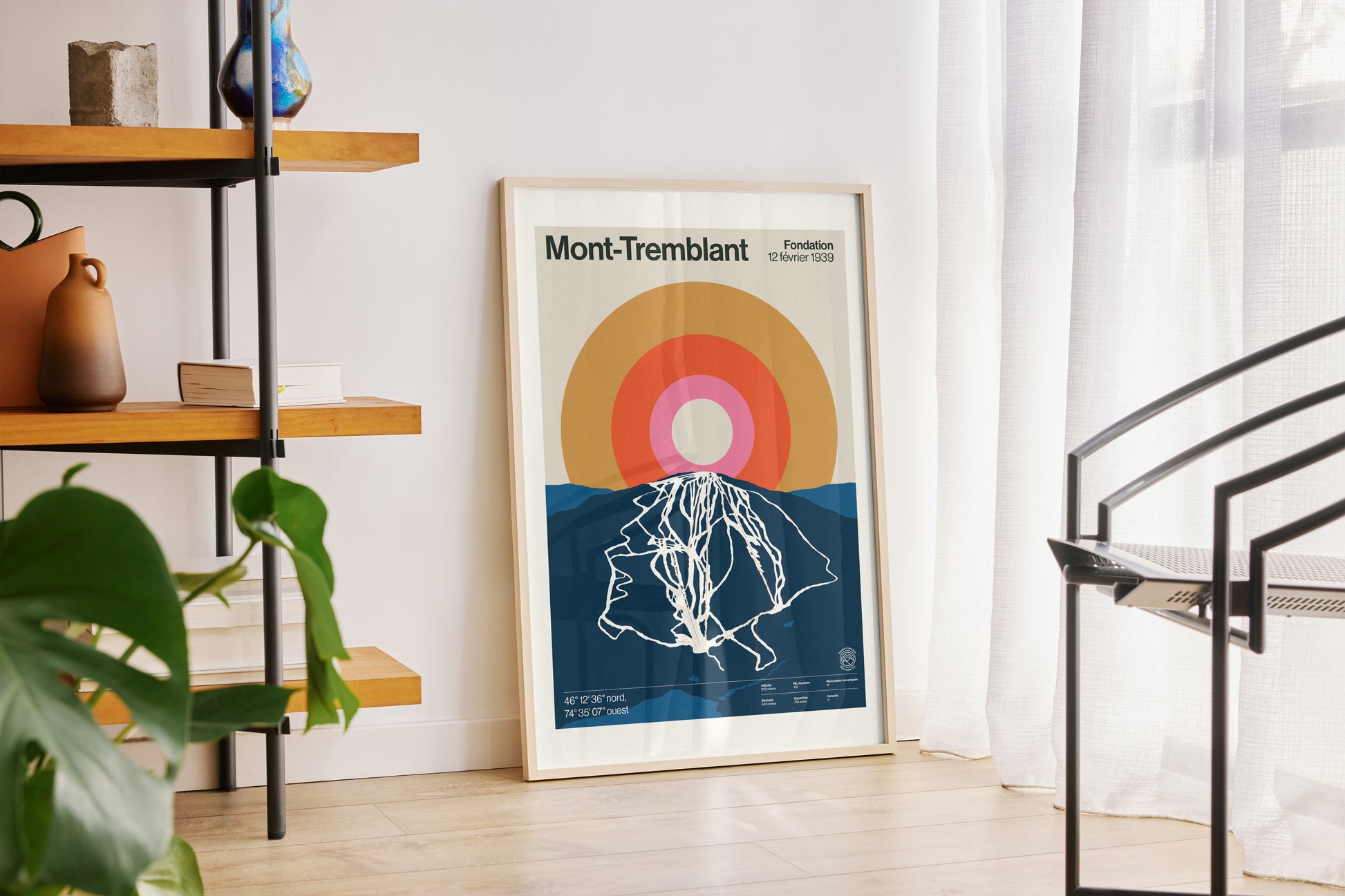 Découvrez l'affiche minimaliste de la carte de la station de ski Mont Tremblant. Aux côtés de la carte détaillée des pistes, trouvez des statistiques telles que l'altitude, le dénivelé, le nombre de pistes, la superficie, le nombre de remontées mécaniques et le nombre de versants.